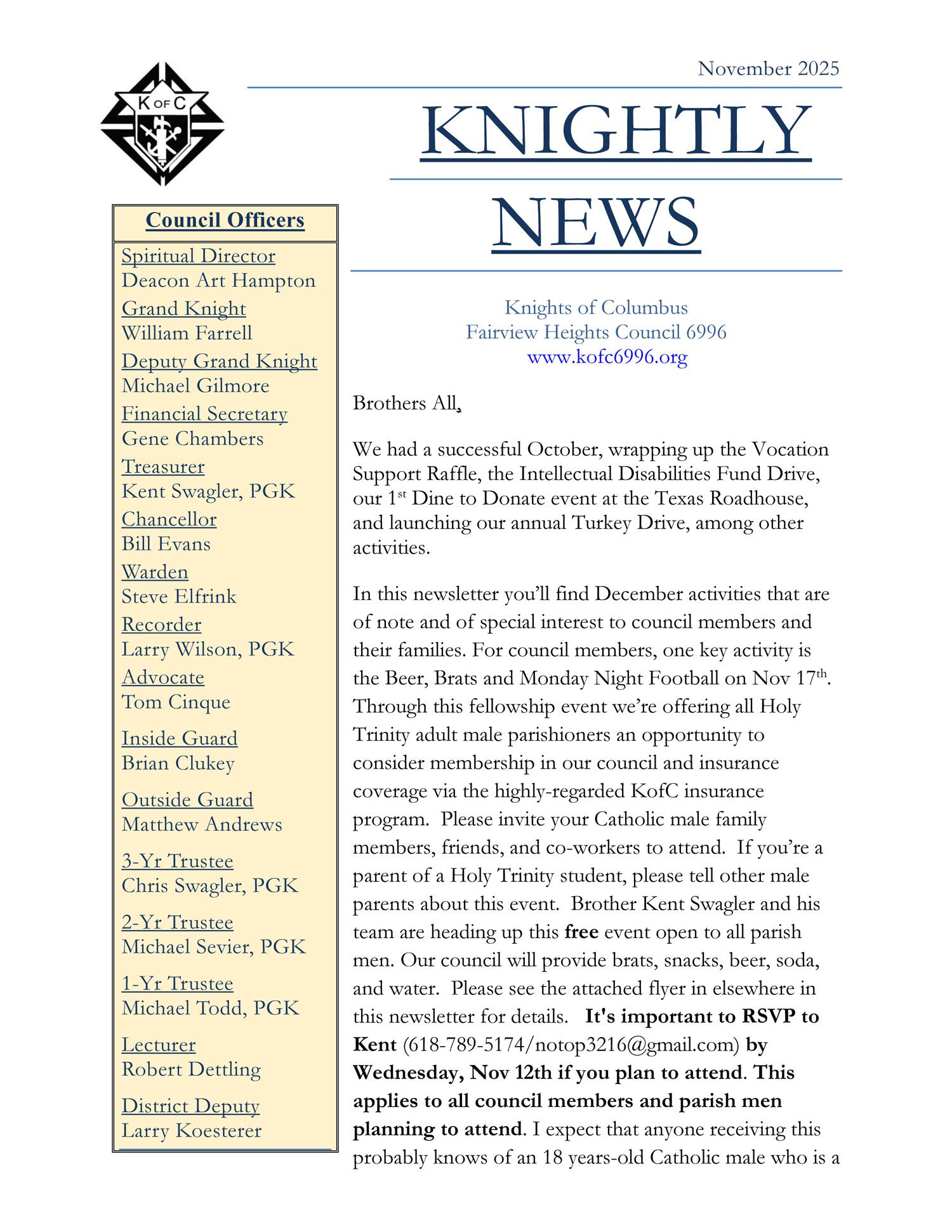Knights of Columbus #6996 © Copyright 2025. All rights reserved. Created by Chris Swagler